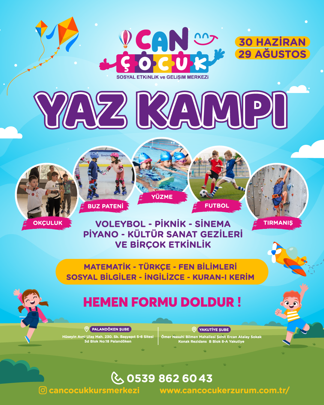 Bu kayıt dolduran tüm öğrencilerimiz Yakutiye veya Palandöken şubelerimizde yaz kampına dahil olacaklar.